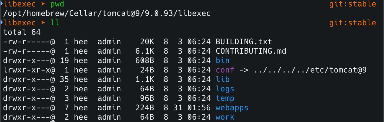 tomcat이 설치된 위치는 /opt/homebrew/Cellar/tomcat@9/9.0.93/libexec