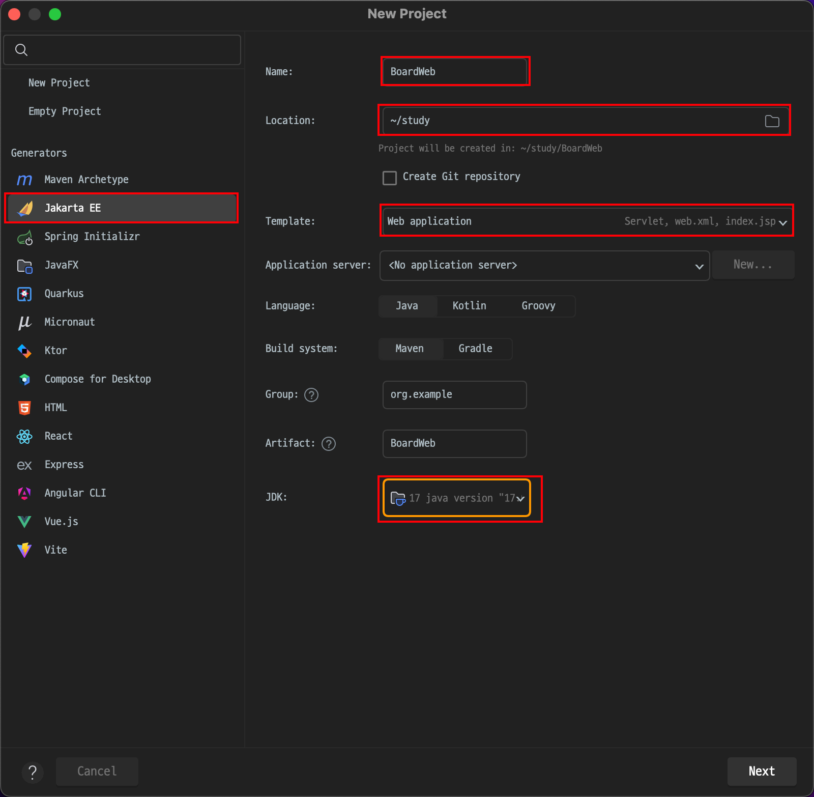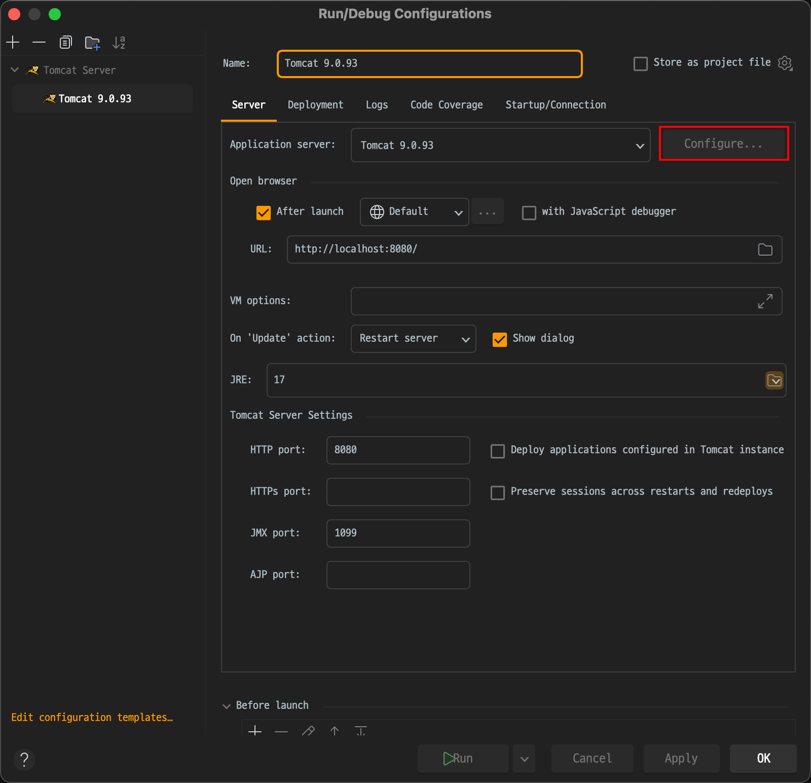 Java 17 버전과 Tomcat 9 버전을 사용할 예정이다. 이유는 딱히 없다.