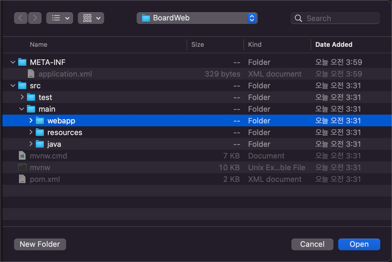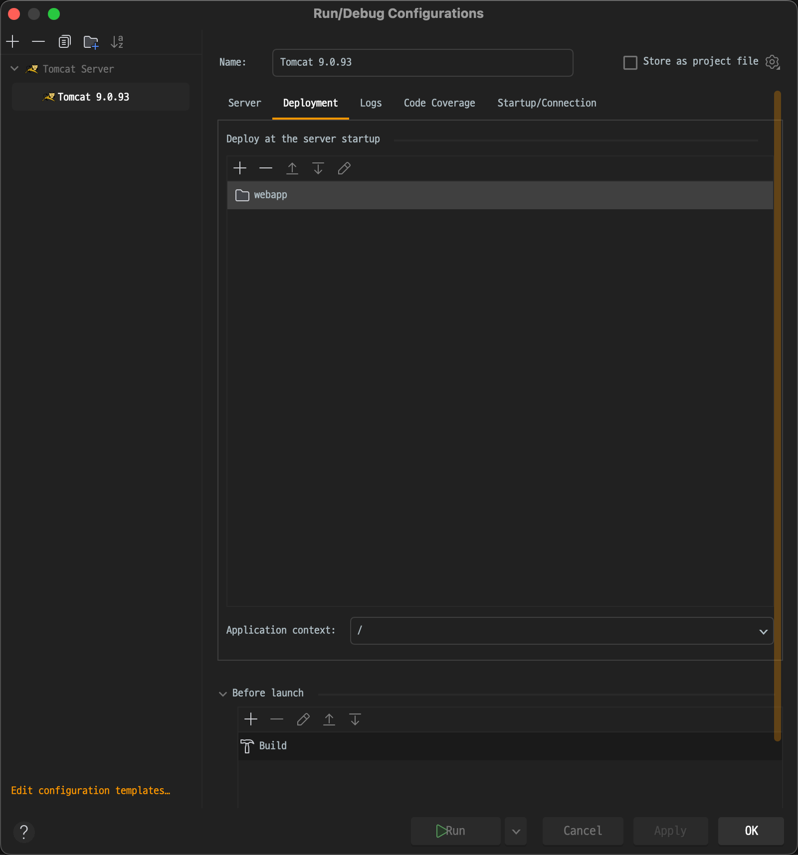 Deployment에 추가 > 프로젝트 내의 webapp 선택